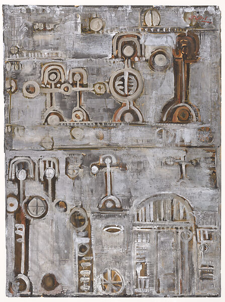 Massoud arabshahi's abstract, symbolic imagery in this work represents a universe on the verge of creation.